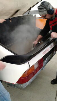 Entfernen der "Orangenhaut" am Einstieg nach hinten. Dort bildet sich mit der Zeit eine hartnäckige Dreckschicht, die mit Trockeneis ratzfatz schonend entfernt werden kann. Sieht danach wie neu aus!